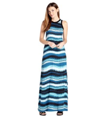 Dresses. Perfect for family get togethers or hitting the mall, this striped Karen Kane maxi dress makes a versatile wardrobe addition that's sure to please. Featured in blue multi Sleeveless Crewneck Allover striped print Maxi length Rayon/spandex Imported