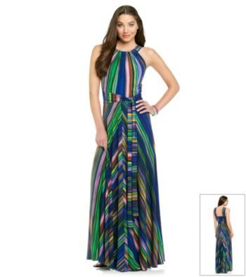 Dresses. You look absolutely fabulous in this striped maxi dress from Muse. Featured in multi Sleeveless Crewneck Squareback Belt at the waist Hidden back zipper Lined Polyester/spandex Imported